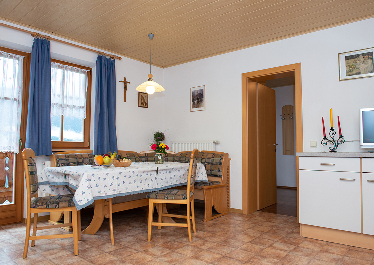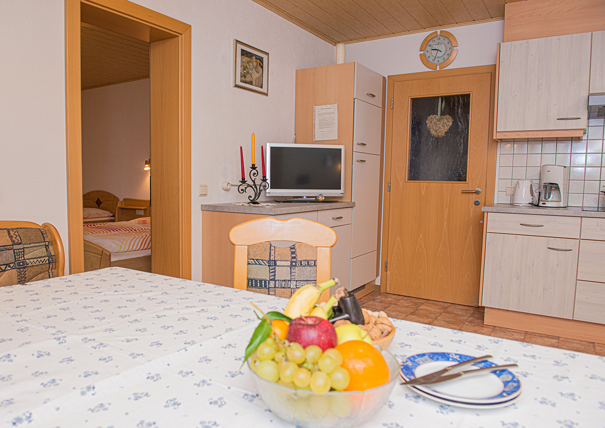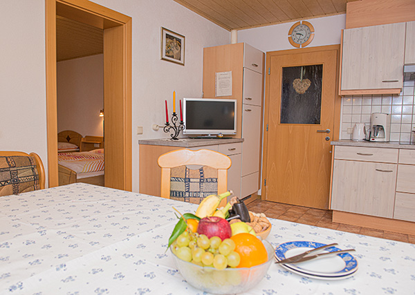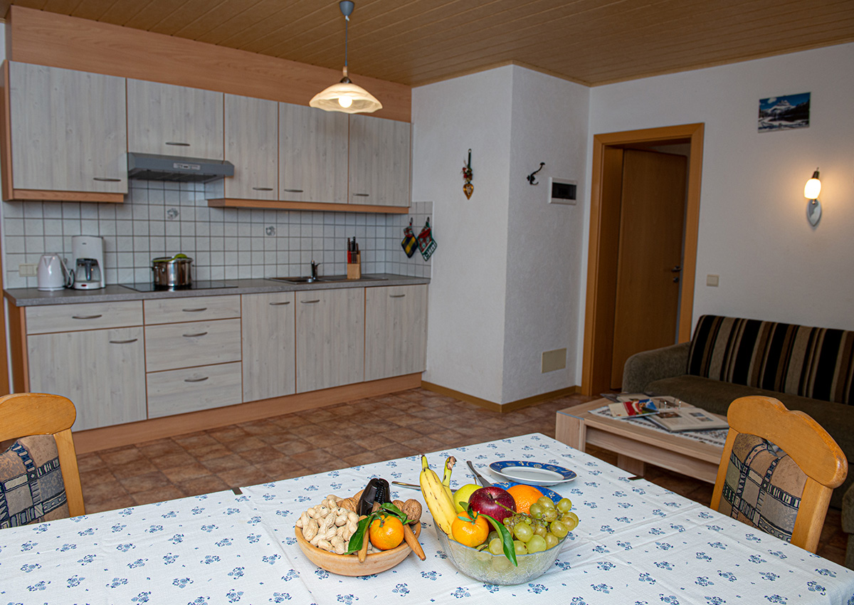 Eine große Küche mit Wohnraum und ein Balkon Richtung Süden machen die Wohnung zu einem idealen Ort um Ihren Urlaub zu genießen.
